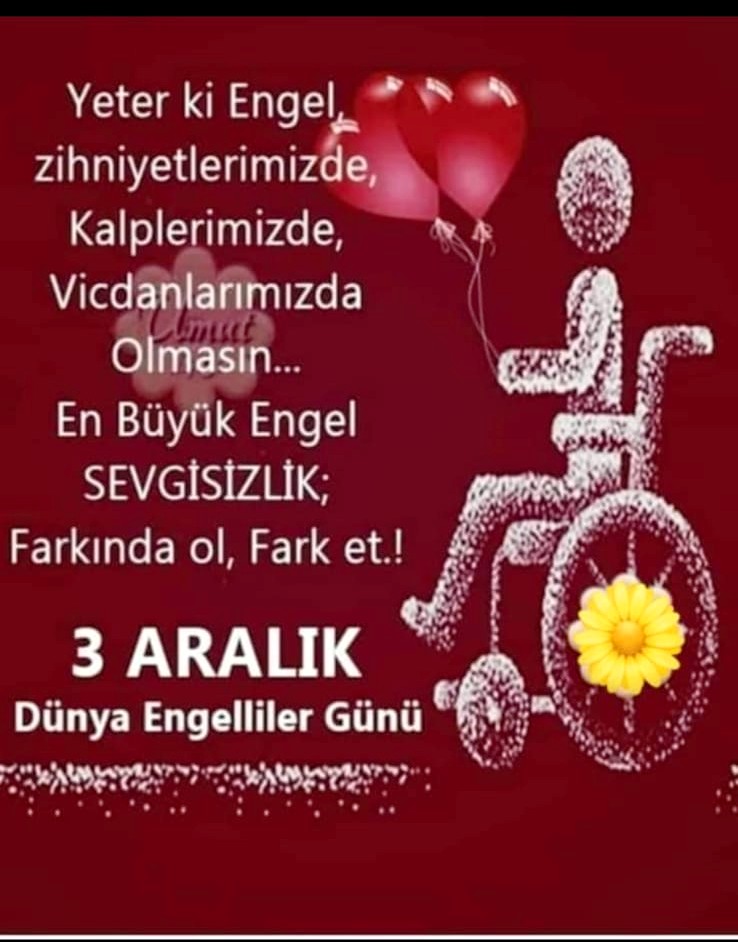 Birleşmiş Milletler’in 1992 yılında almış olduğu karar sonrası “Uluslararası Engelliler Günü” olarak ilan edilen 3 Aralık, o gün itibariyle tüm dünyada engelli insanların sorunlarına dikkat çekmek ve onları daha iyi anlayabilmek amacı ile belirlenmiş bir gündür.