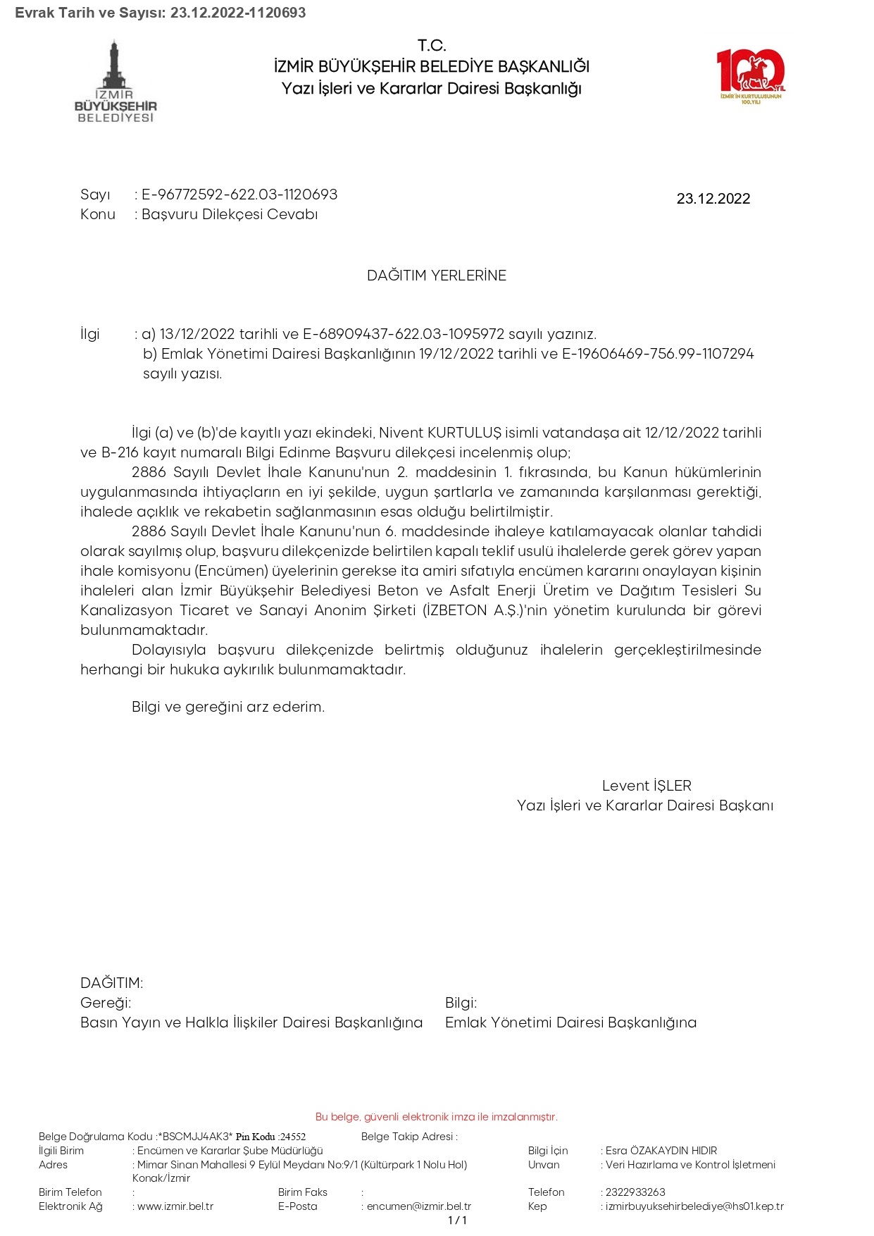 1- İhale 2886 sayılı Devlet İhale Kanunu’nun 37. maddesine göre “kapalı teklif usulü” ile yapıldığından ve aynı kanunun “İhaleye katılamayacak olanlar” başlığını taşıyan 6. maddesinin 1. fıkrasının (a) fıkrasına göre ihaleyi yapan idarenin; yani İzmir Büyükşehir Belediyesi’nin hem de İZBETON şirketinin ita amiri sıfatındaki Mustafa Tunç Soyer, ita amiri olduğu İBB’nin açtığı ihaleye yine ita amiri olduğu İZBETON A.Ş. adına girip teklif veremeyeceği için bu durum açık ve kesin bir şekilde kanuna aykırı olmasına karşın nasıl ihaleye katılımı sağlanmıştır?