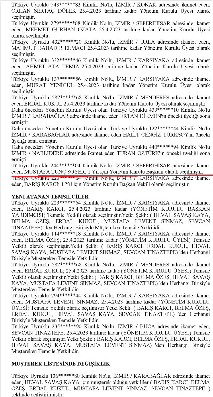 Tunç SOYER Yönetim Kurulu Başkanı değil dendiğinin belgeli yazışmalarıyla devam edeceğim.
