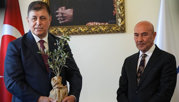Konuşmaların ardından Soyer, Tugay’a zeytin fidanı hediye etti. Cemil Tugay, bu fidanı makam odasında yetiştirerek büyüteceğini söyledi.