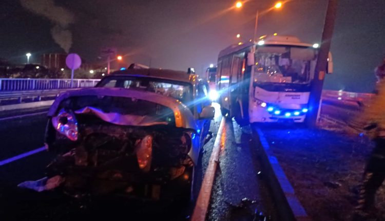 Kaza, dün akşam saatlerinde İzmir – Ankara karayolu üzeri OSB Kavşağı’nda meydana geldi. Edinilen bilgiye göre, İzmir’den Turgutlu istikametine seyir halinde olan Ramazan K. (41) yönetimindeki 45 ZB 5204 plakalı hafif ticari araç, yağış nedeniyle kayganlaşan yolda aynı yönde giden Serdar Ç. (40) yönetimindeki 45 AHA 382 plakalı otomobille çarpıştı. Bu sırada arkadan gelen Zekeriya B. (39) yönetimindeki 45 ALF 099 plakalı işçi servisi, önce hafif ticari araca, ardından refüjde bulunan aydınlatma direğine çarptı. İhbar üzerine olay yerine polis, sağlık ve itfaiye ekipleri sevk edildi. Kazada 9’u işçi servisinde olmak üzere toplam 10 kişi yaralandı. Sağlık ekiplerince Turgutlu Devlet Hastanesi ve Manisa Şehir Hastanesine sevk edilen yaralıların durumunun iyi olduğu öğrenildi. Kazayla ilgili inceleme başlatıldı.