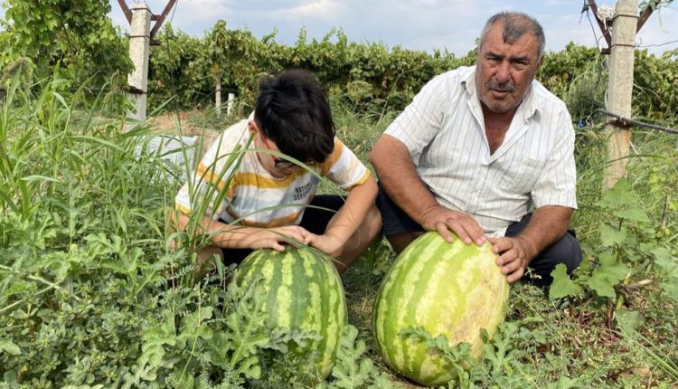Manisalı çiftçi üzüm bağında 30 kiloluk karpuz yetiştirdi!