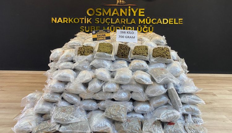 Aracın dorsesinde narkotik köpeğinin yardımıyla yapılan aramada 166 kilo 700 gram sentetik uyuşturucu bulundu.
